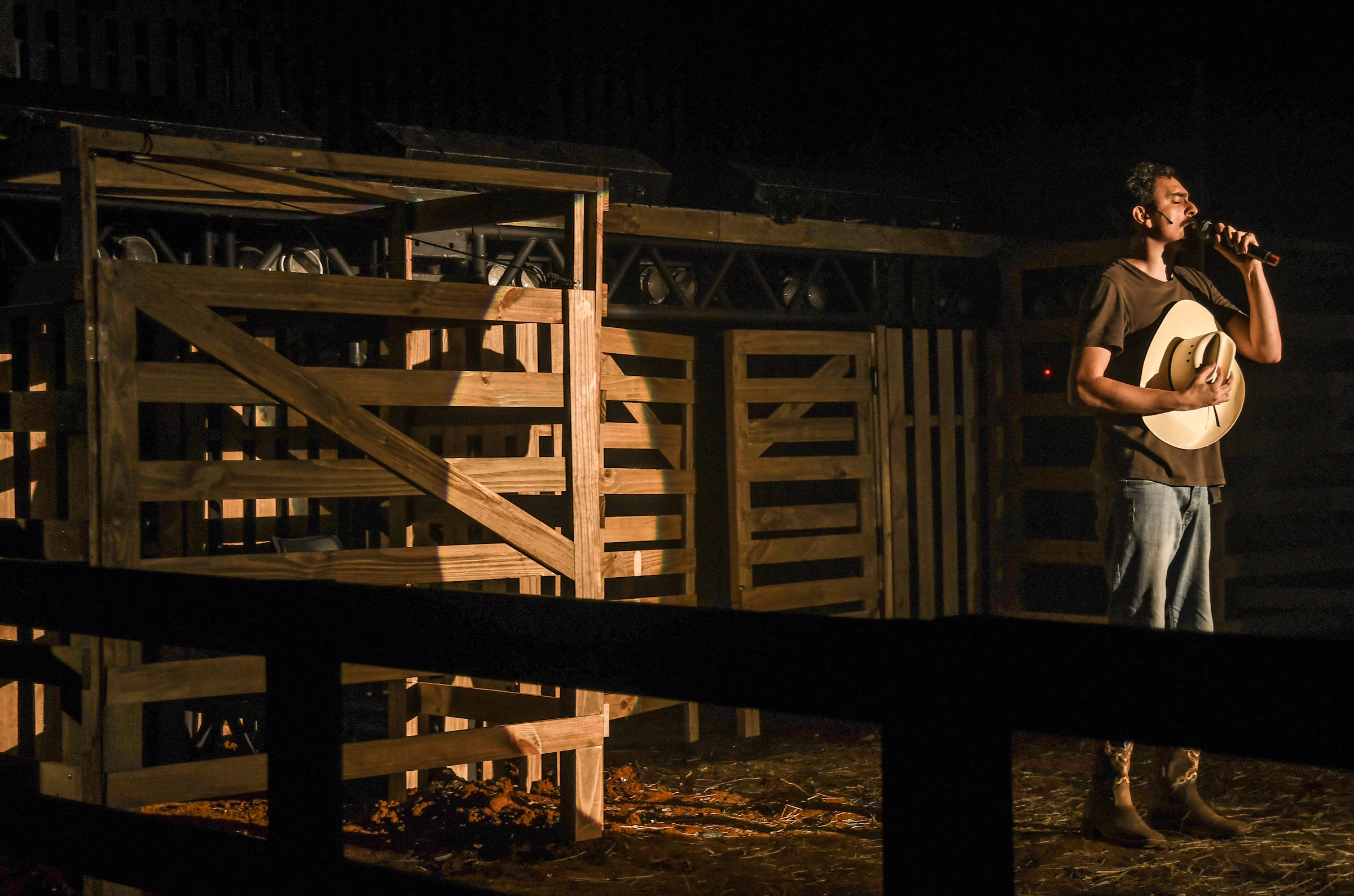 A encenação ocupa um galpão de grandes proporções com 20 toneladas de terra.